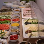 Ein Frühstücksbuffet wird jeden Tag serviert.